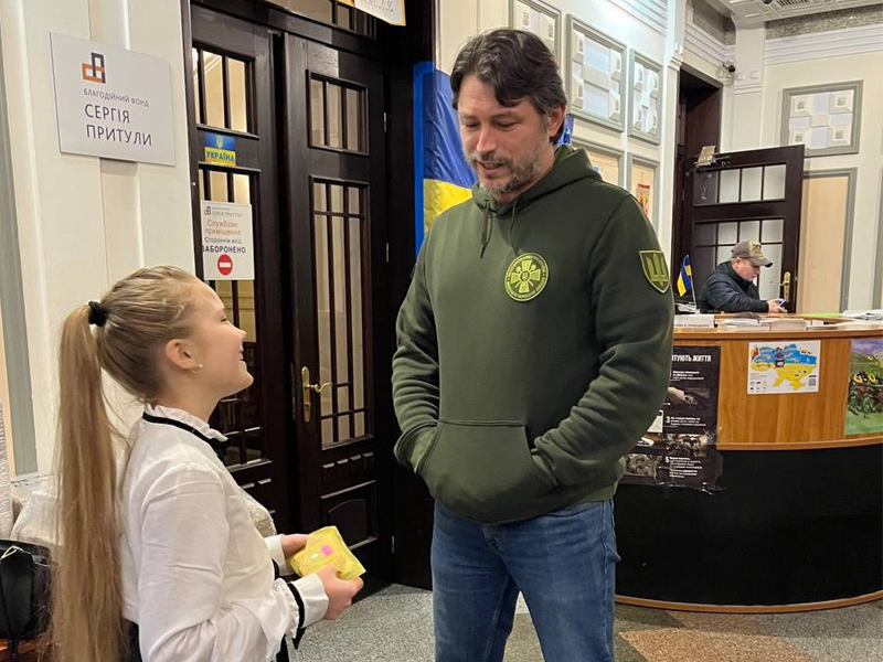 За три недели Кира насобирала 21 тысячу гривен, которые лично передала Сергею Притуле 7 ноября, чтобы на эти средства купили дрон для ВСУ. В благодарность Кире и ее маме после передачи денег, волонтеры провели экскурсию по гуманитарному центру, что еще больше вдохновило девочку на помощь украинской армии.