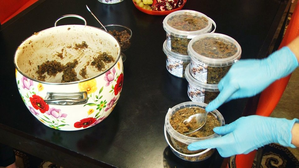 Як вже зазначалося, приготування пасти не потребує якихось особливих знань чи навичок. Олена розповідає, що для виготовлення знадобиться сім інгредієнтів: мед, родзинки, курага, інжир, чорнослив, горіхи та лимони.