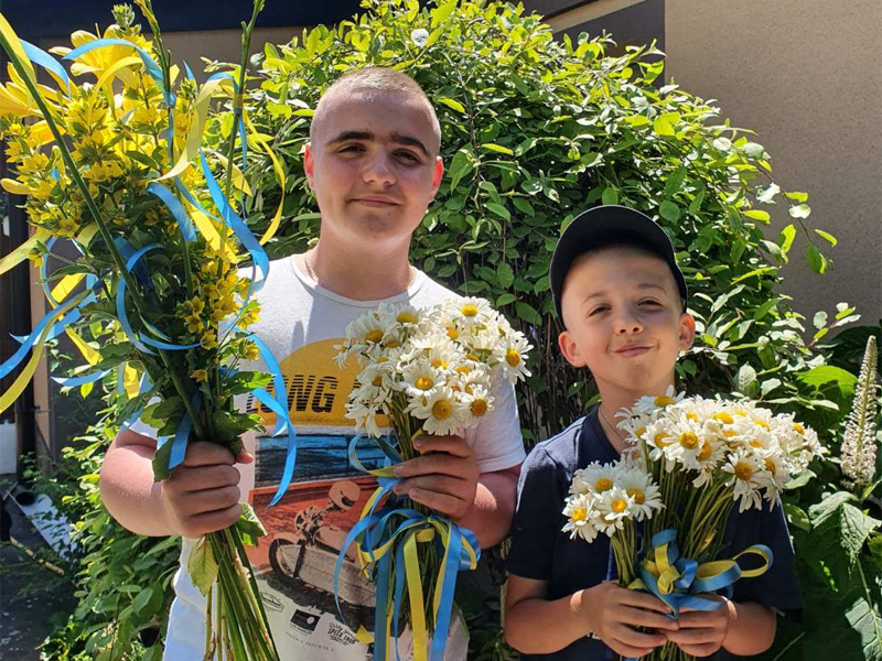 Згодом деякі діти, що були молодші, втомились, а Іван та Андрій продовжили займатись доброю справою. Переважно все робили самі, Ольга Кваша допомагала лише зі збиранням букетів та їх оформленням. Квіти брали на подвір’ї власного приватного будинку, та з сусідських клумб, якщо дозволяли, якісь матеріали знаходили вдома, щось додатково докуповували. Букети прикрашали синьо-жовтими стрічками.