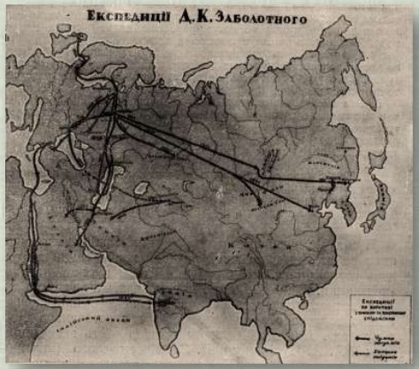 Данило Заболотний на пряму контактував із страшними і небезпечними для життя інфекціями. Брав участь у експедиціях до місць спалахів небезпечних хвороб: Астраханська губернія, Одеса, Монголія, Індія, Шотландії, Марокко, Персія.