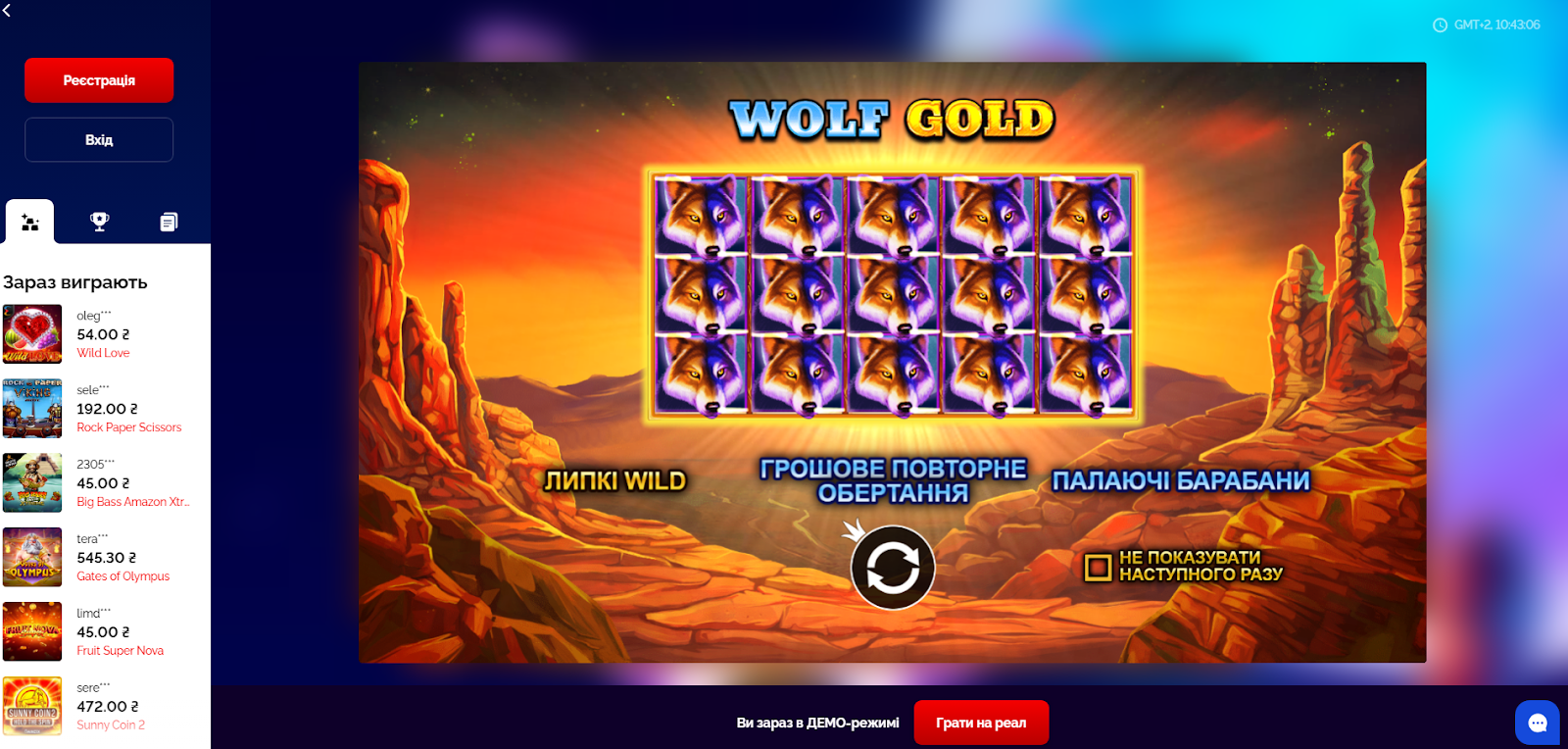 - вовки сприймаються в слоті не як хижаки, а як дикі символи. Скориставшись ними, гравець зможе відчути смак перемоги;